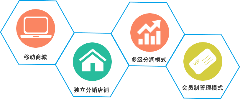 集“移動商城+獨立分銷店鋪+多級分潤模式/會員制管理模式 幫助企業(yè)搭建移動分銷平臺,基于社交分享幫助產(chǎn)品銷售、渠道管理、品牌推廣